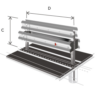 Двухстороннее двухъярусное ограждение дорожного класса 21ДД/350-1,1х2,0С1(5)-W(2,5)/W(3)-0,7(0,89), вторая группа удерживающей способности, высота ограждения 1.1 метра с шагом стоек 2 метра. Имеет двухволновой профиль и С-образную стойку, которая предназначено для установки на обочинах и препятствует выезду транспортных средств за боковые границы автодороги, так же разделяет проезжую часть от тротуара.