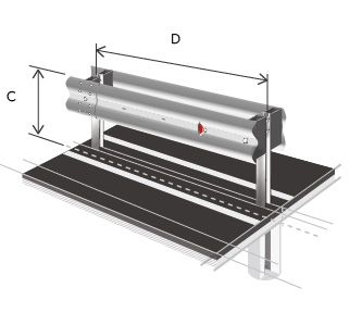 Двухстороннее одноярусное ограждение дорожного класса 21ДД/300-0,75х1,5С2(4)-W(2,5)-0,49(1,85), вторая группа удерживающей способности, высота ограждения 0,75 метра с шагом стоек 1.5 метра. Имеет двухволновой профиль и С-образную стойку, которая предназначено для установки на обочинах и препятствует выезду транспортных средств за боковые границы автодороги, так же разделяет проезжую часть от тротуара.